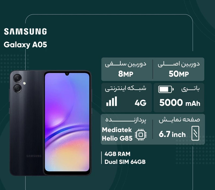 مشخصات باتری : باتری لیتیوم-پلیمر با ظرفیت ۵۰۰۰ میلیآمپرساعت / فناوری شارژ سریع ۲۵ وات