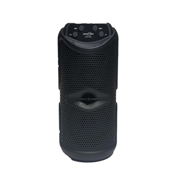 اسپیکر بلوتوثی گریت نایس 1557 gts دارای دو اسپیکر 3 اینچی 5 وات واقعی است که کیفیت صدایی واضح و بلندی را برای شما به ارمغان می آورد. این اسپیکر قبلیت پخش از usb و sd card و بلوتوث می باشد .این اسپیکر همراه یک کابل شارژ اراِئه می گردد