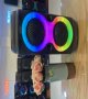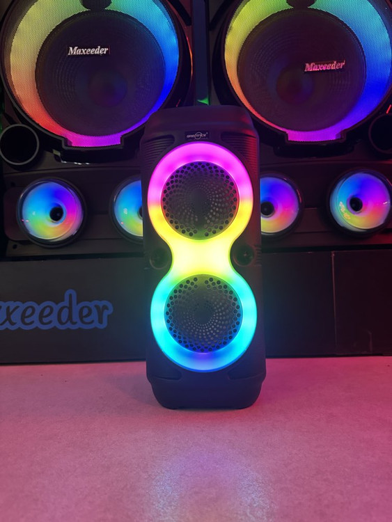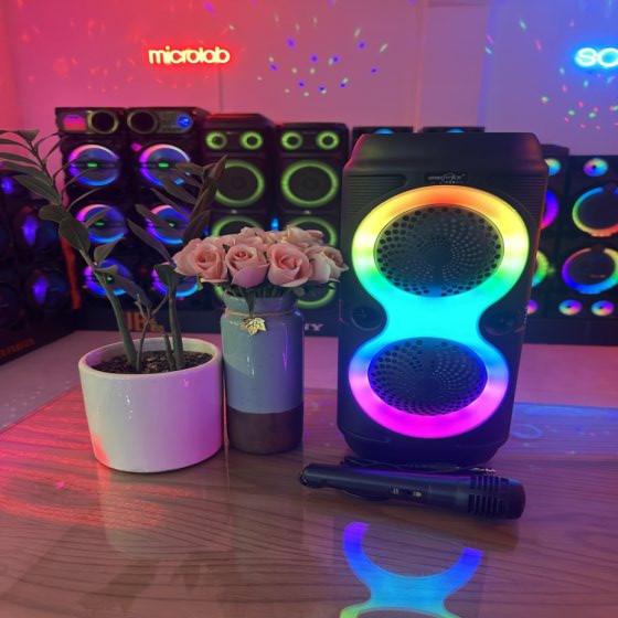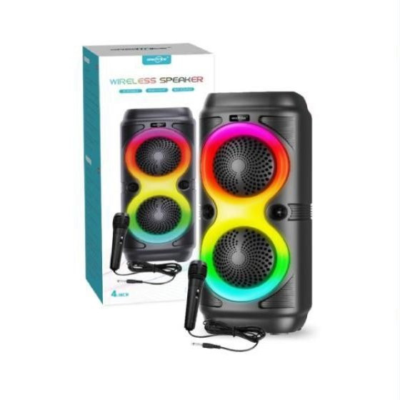 جنس بدنه ساخته شده از پلاستیک با کیفیت، مقاوم در برابر آسیب های احتمالی همچون فشار و ضربه دارای یک عدد درگاه USB و یک عدد درگاه TF جهت پخش فایل های ذخیره شده ویک عدد درگاه اتصال میکروفون کلیدهای فیزیکی تعبیه شده بر روی بدنه جهت مدیریت موسیقی، MODE، خاموش/ روشن و...، اقلام همراه یک عدد میکروفون اتصال بی سیم از طریق بلوتوث و اتصال با سیم توسط جک 3.5 میلی متری صدا، مجهز به نورپردازی RGB جهت ایجاد جلوه بصری زیبا تامین انرژی از طریق باتری لیتیومی با ظرفیت 1500mAh، شارژ مجدد از طریق درگاه تایپ سی تعبیه شده بر روی بدنه توسط کابل همراه برخوردار از 2 درایو 4 اینچی با توان خروجی 10 وات (2*5W)، حساسیت سیگنال به نویز 80db و پاسخ فرکانسی 100 هرتز الی 20 کیلوهرتز