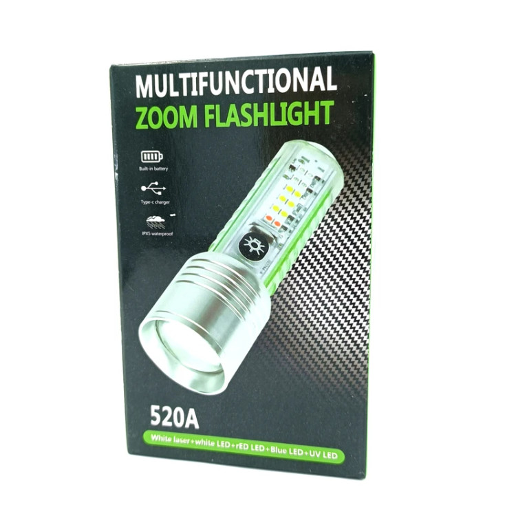 چراغ قوه پلیسی چند کاره مدل ZY-F520A uv دارای 8 حالت پخش نور می باشد و طراحی فوق العاده ی آن باعث شده که کاربران زیادی را به سمت خود جلب کند. این چراغ قوه وزن سبکی دارد و استفاده ی طولانی مدت از آن باعث خستگی نمی شود و به راحتی می توان آن را حمل و جابجا کرد. همچنین دارای کاربردهای مختلفی است و یکی از ویژگی های مهم آن، ضدآب بودن است که در زیر بارش باران مقاوم بوده و خراب نمیشود.