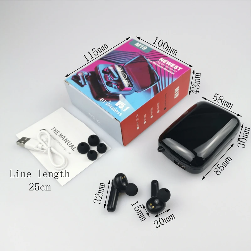 اگر به دنبال هدفون بیسیم جمعوجور هستید، M19 NEWEST یکی از گزینههایتان است. این مدل برخلاف ایرپاد بهصورت کامل در گوشتان قرار میگیرد. این محصول دارای محفظه با ابعاد استانداردی است و بهآسانی در جیب و کیفتان جای میگیرد. محفظه شارژ مجهز به باتری قدرتمند 3500mAh است که تا ساعت ها میتوانید از آن استفاده کنید یا به عنوان پاوربانک برای شارژ گوشی بهره ببرید. همچنین این محفظه دارای نشانگر LED زیبا برای نمایش میزان شارژ محفظه و هریک از گوشی هاست. اتصال این هدفون به گوشی از طریق بلوتوث امکانپذیر است. برای این محصول بلوتوث نسخه 5 تعبیهشده تا برقراری ارتباط کیفیت بالایی داشته باشد.فاصله اتصال 10 متری ، عملکرد پایدار ، انتقال زیاد ، مصرف کم و سازگاری قوی را به شما اراءه میدهد. اگر قصد دارید از این مدل بدون محفظه استفاده کنید، تا 4 ساعت این محصول قابلیت پخش موسیقی را به شما میدهد. در صورت استفاده از محفظه شارژ این میزان تا 12 ساعت افزایش مییابد. زمان مکالمه 4 الی 6 ساعت و زمان شارژ محفظه 1.5 ساعت می باشد. این هدفون دارای استاندارد IPX-7 بالاترین سطح ضد آب بودن است. استفاده از فناوری کاهش صدای دیجیتال.از لحاظ ارگونومیک با طراحی خوب براحتی در گوش قرار میگیرد.